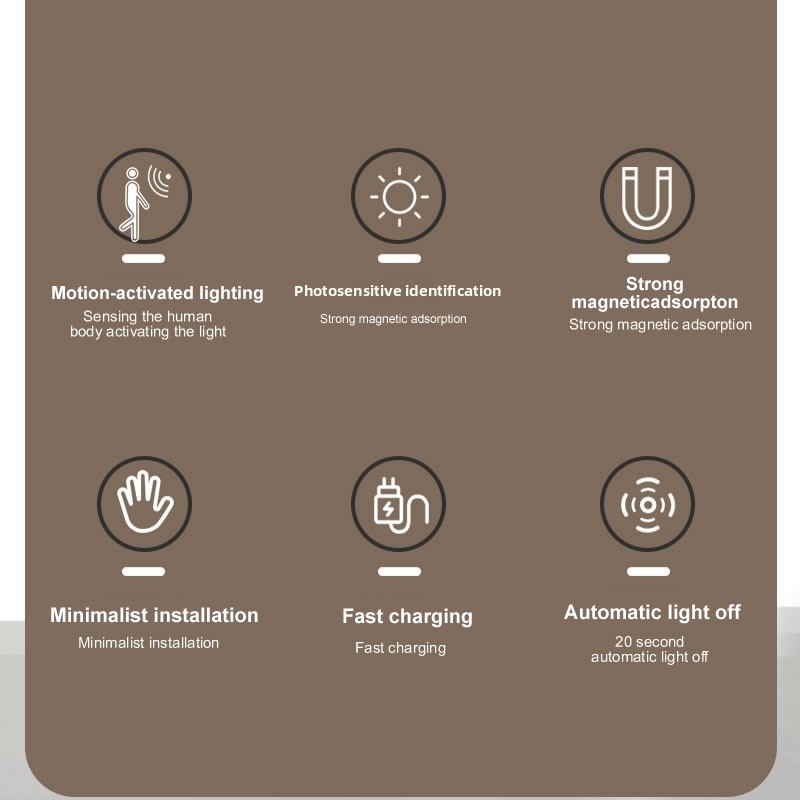 Product material: ABS/HDPE Sense distance: 0~4M Battery: 500mah Light source:Warm tone Product size: ≈200x41x20mm
