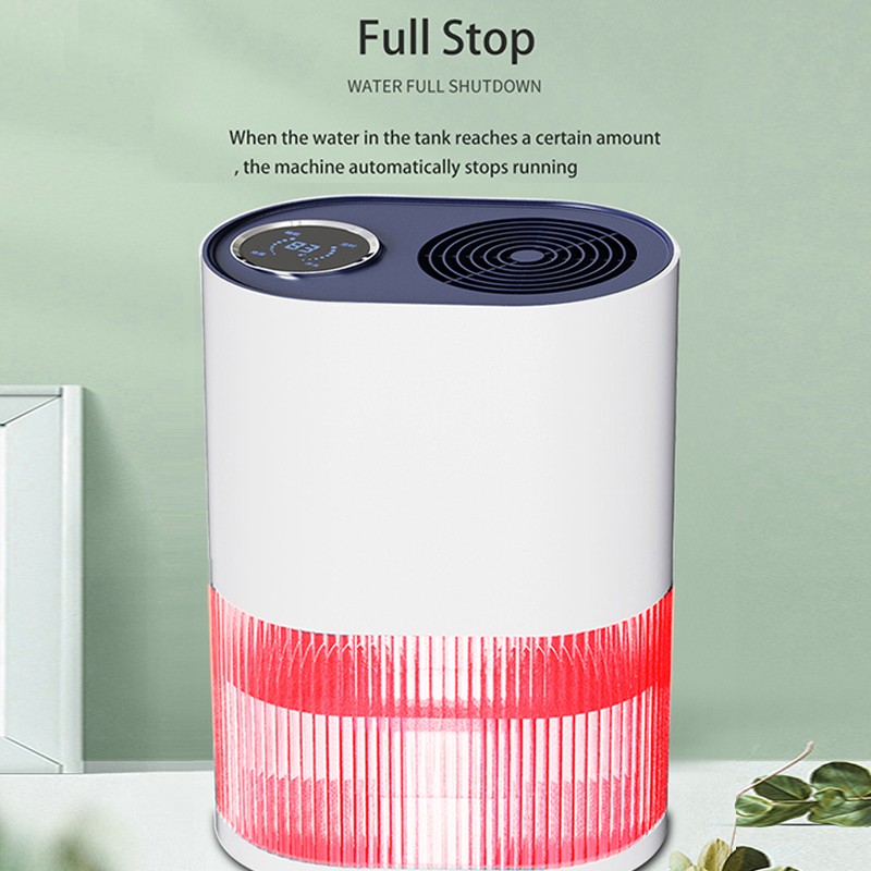 Bucket Capacity (ml):2000 Working Temperature(℃):5~38 Voltage:100V-240V Input power (W) :72W Consumption:1.6Kwh/24H Dehumidification Capacity:500-600ml/24H Dehumidification area (㎡):20 Net Dimensions (mm) :215*140*290mm Gift box Dimensions (mm) :255*180*310mm Out carton Dimensions (mm) :530*560*330mm(6pcs) G.W :2200g